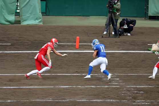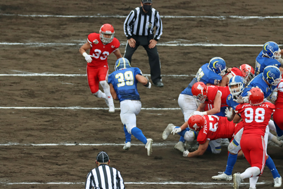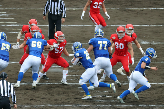 序盤は、関学ディフェンスに的を絞らせないプレーで、苦戦を強いられました。