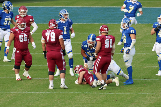 14-21とTD1本差で前半終了G 関学の攻撃で後半開始。
